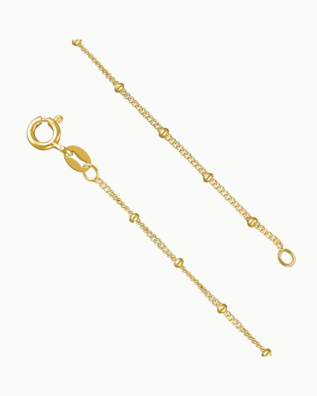 Onze sieraden zijn verguld met een laag van 14 karaat goud. Dit betekent dat er een echte goudlaag is aangebracht op een hoogwaardige basis. De vergulding is zorgvuldig opgebouwd en afgewerkt met een anti-tarnish beschermlaag, waardoor het sieraad zijn warme glans behoudt en minder snel verkleurt bij normaal gebruik.